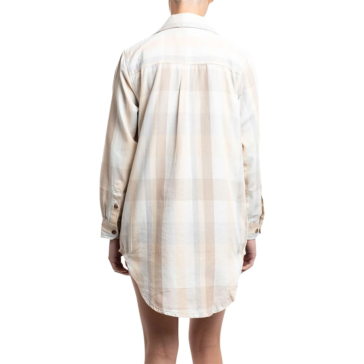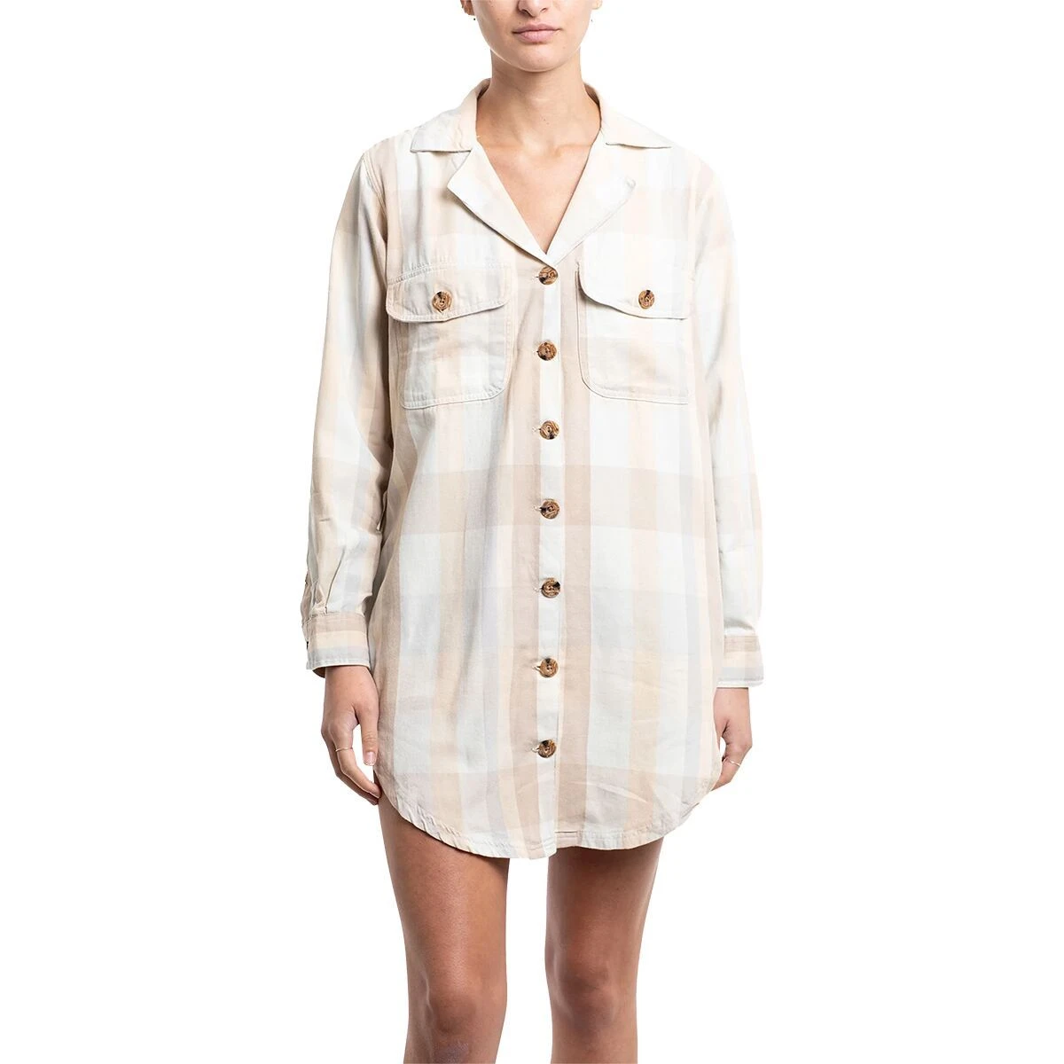 Camp collar, deep pockets, large buttons, and a curved hem, the Bonita Dress has all the fun details of a feminine flannel in a comfy, layerable silhouette. Designed to be worn buttoned up as a dress, open as a lightweight shacket, or half tucked as a shirt, the Bonita is as versatile as it is stylish. Sport this at the bar or any holiday event this season. Designed at Jetty HQ.