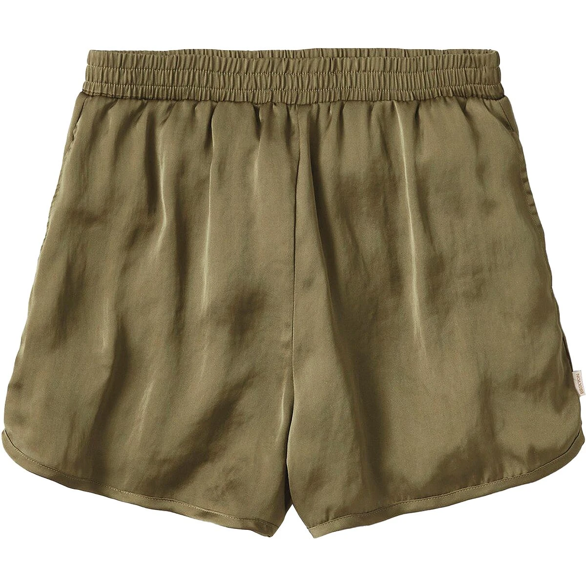 The Flight Runners are a retro-style short in flowy, polyester satin. An elastic waistband sits at your natural waistline while scalloped side seams finish the legs. Ideal for travel or beach days.