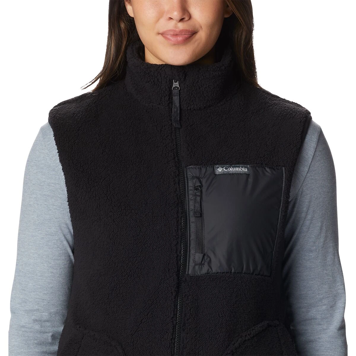 For quick flair and a cozy feeling, the Holly Hideaway Vest is the ideal winter statement piece. Sherpa fleece keeps our core toasty, and synthetic threads offer technical performance so we can hike or hang around town.