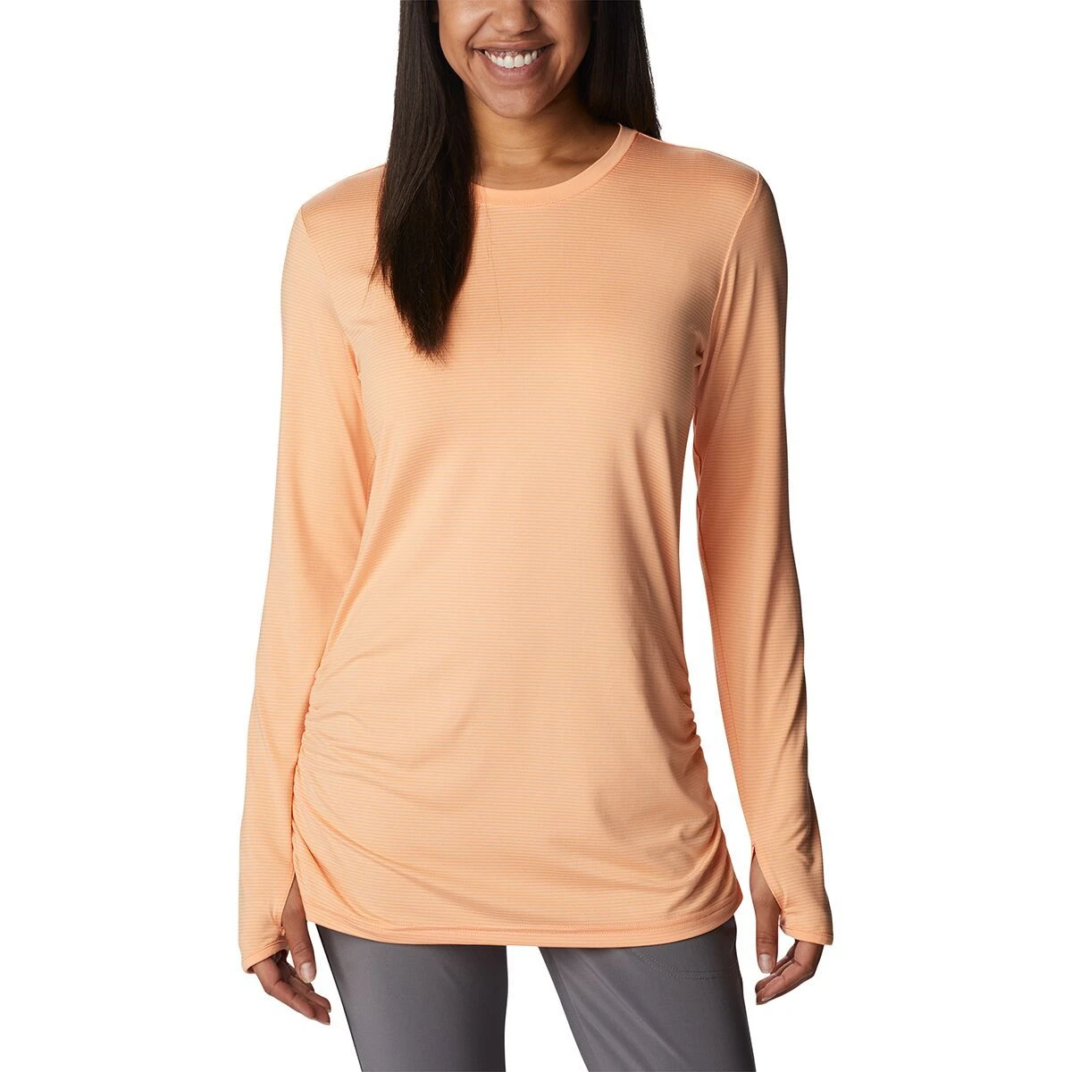 Big-time adventures in the bright sun call for the Columbia Leslie Falls Long-Sleeve Shirt. This shirt wicks moisture when we work up a sweat, provides coverage from the hot sun, and eliminates odors so that we can do it all again tomorrow.
