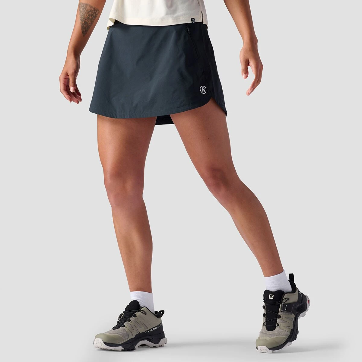By bike or bus, we travel in the Backcountry Destination Skort. Our Destination collection was crafted to match our do-it-all lifestyles with trail-ready tech, ultra-soft materials, and move-with-you design. Our skort is loaded up with pockets to keep daily and outdoor essentials within reach. Techy fabric repels moisture and wicks sweat for comfort on the go. And recycled content makes the soft-on-the-skin materials easy on the earth, too.
