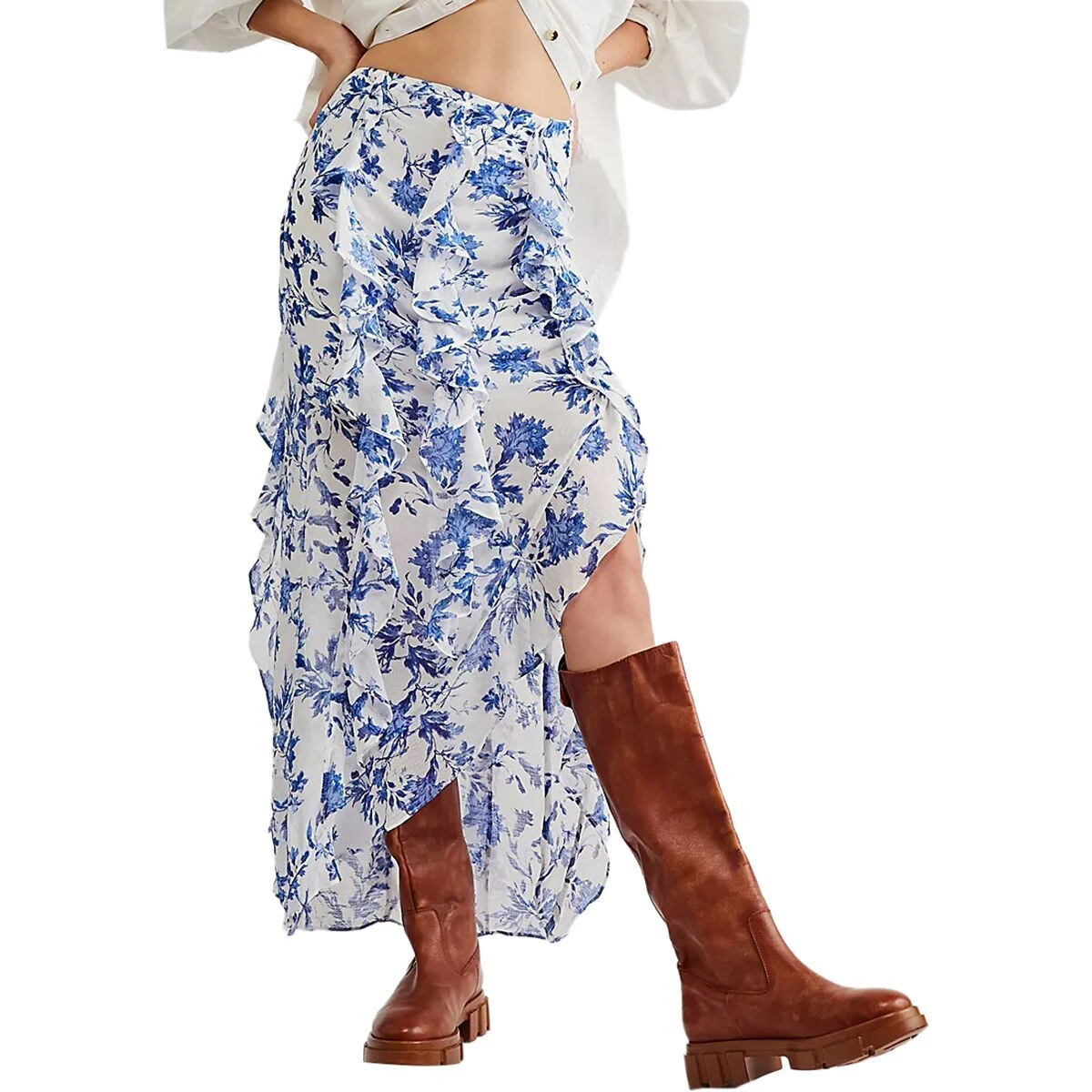 The Flounce Around Maxi Skirt features a mid-rise waist and slim fit with ruched paneling throughout to make a charming and vintage-inspired statement piece.