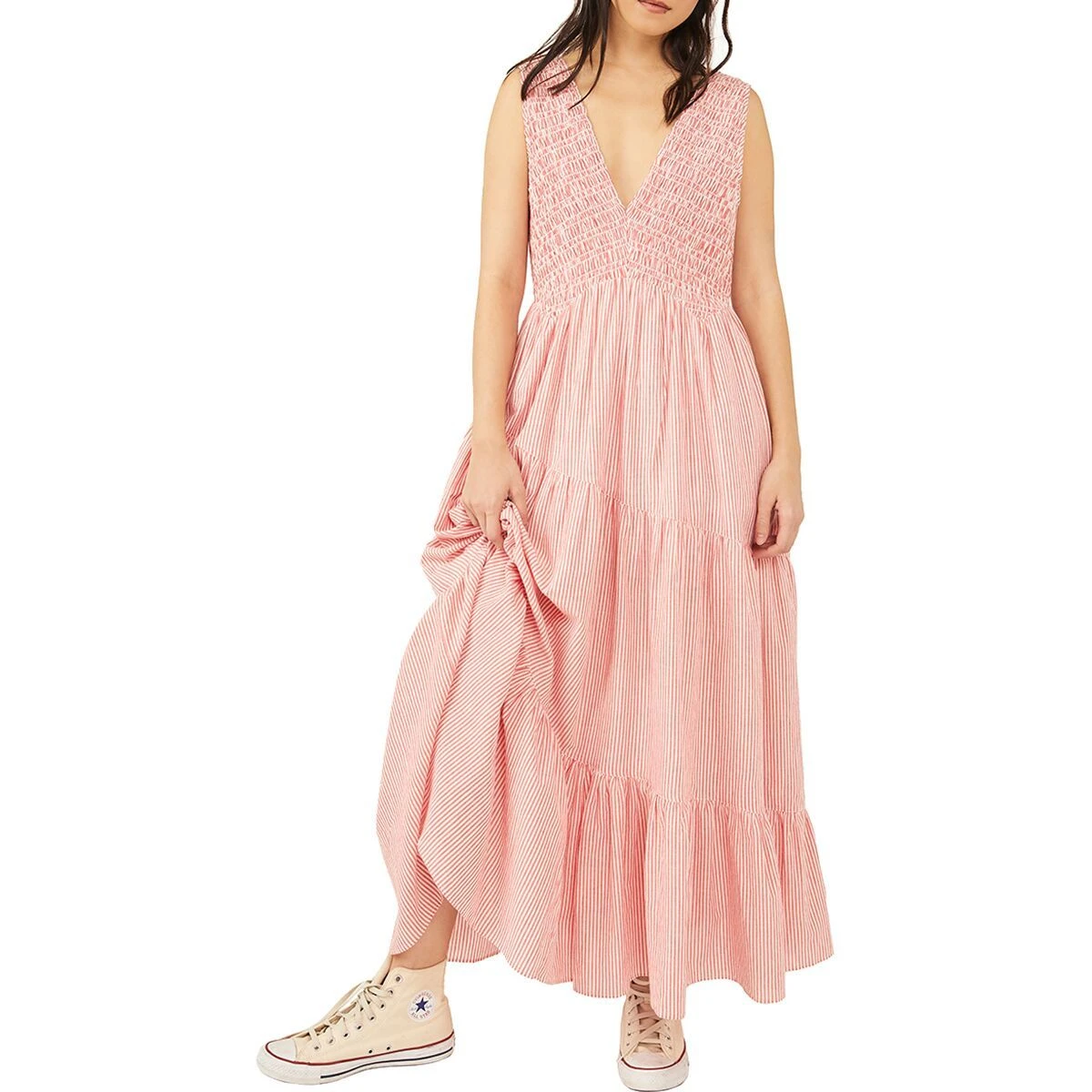 The Juno Maxi Dress gives us the easy-breezy sensation we crave when tossing on a dress for the day. We love how whimsical its lower section is, swaying in the wind as we spin on the beach, yet we appreciate the contrasting shirred detailing on the bust, giving us a charming silhouette against the sunset.