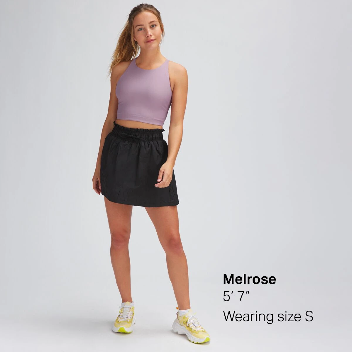 We fashioned the High Waist Skort to be our go-to on hot summer days. The lightweight material lets air flow through as it wicks moisture and dries at top speed for ultimate comfort in the heat, while the short liner lets us hop on a bike to create our own breeze.