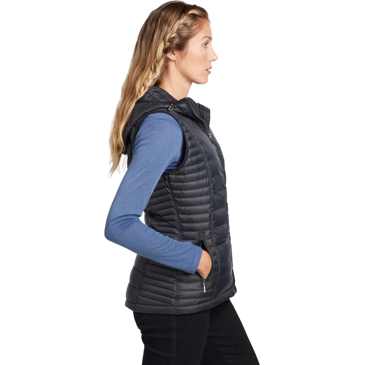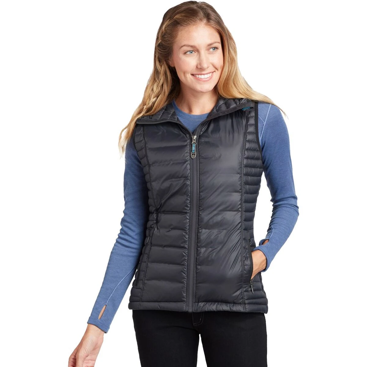 - Thinner baffles under arms reduce bulk for seamless layering