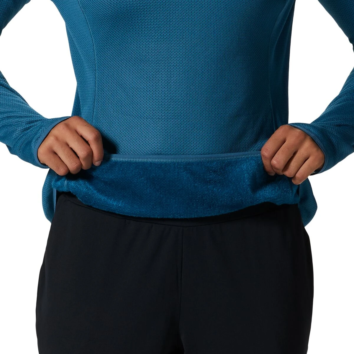 - Light and cozy hooded midlayer for chilly-weather active adventures
