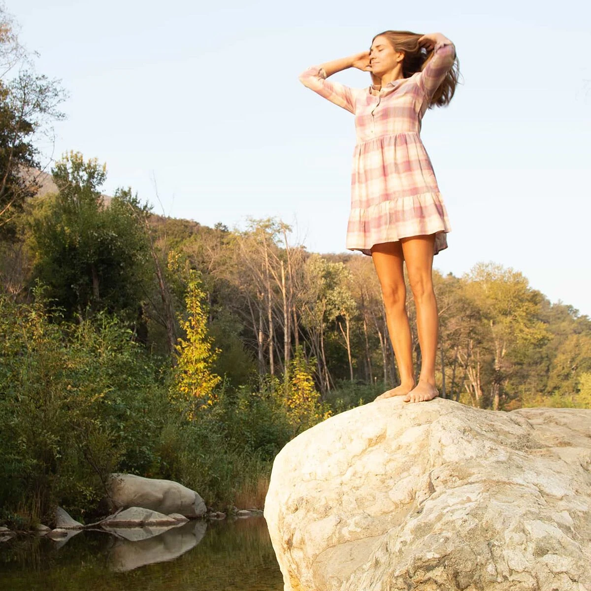 Who says flannel cant be feminine? For days when your inner tomboy wants to go glam, this shirt-dress is here for the occasion. A tiered hemline gives this outfit some flounce, but roomy hand pockets keep things practical. Even better, our midweight fabric is crafted completely from recycled materials