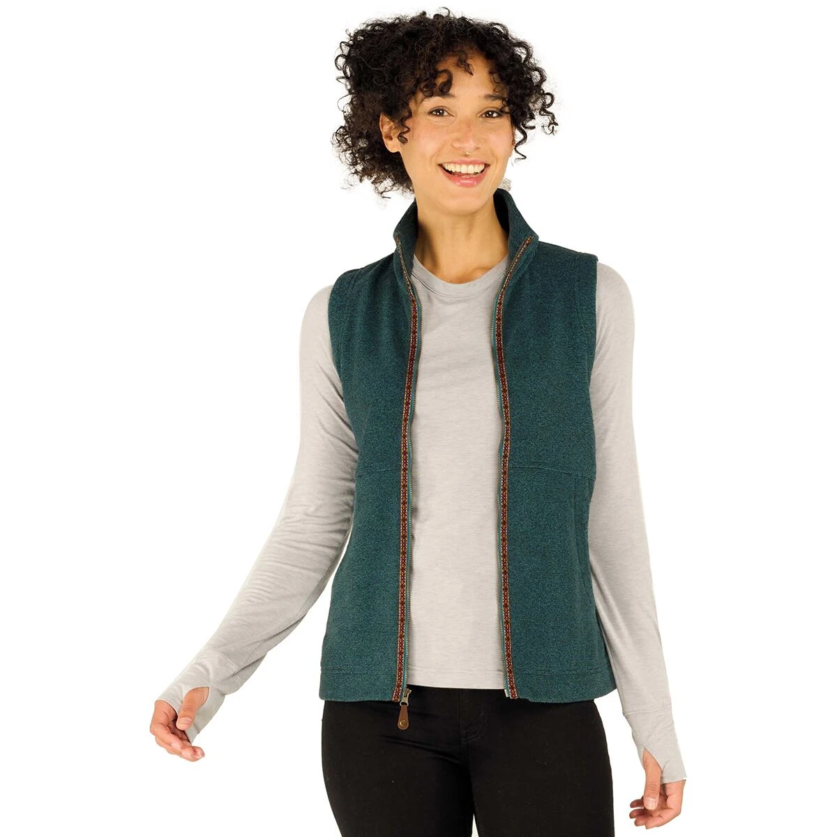 The Rolpa Vest uses a sustainable blend of recycled polyester to create a low-bulk and anti-pill fleece, providing breathable warmth and plush comfort for cool-weather layering. Exclusive Nepalese-inspired trim along the main zipper adds a unique touch to this seasonal staple.