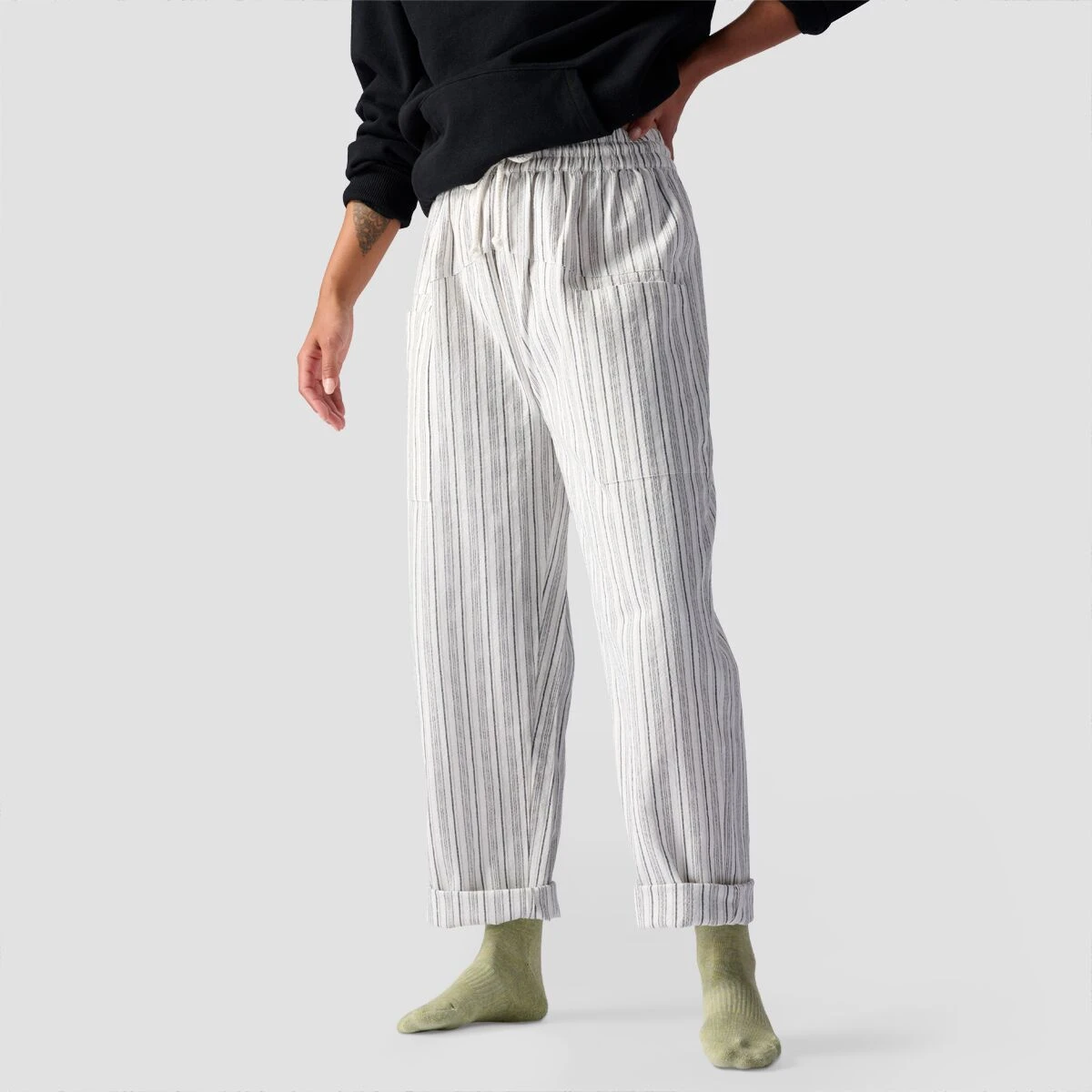 We designed our Backcountry Textured Cotton Pull On Pant for our off days. The light and breezy build lets our skin breathe easy, while the relaxed cut and high waist gives us a free-moving, flattering aesthetic.