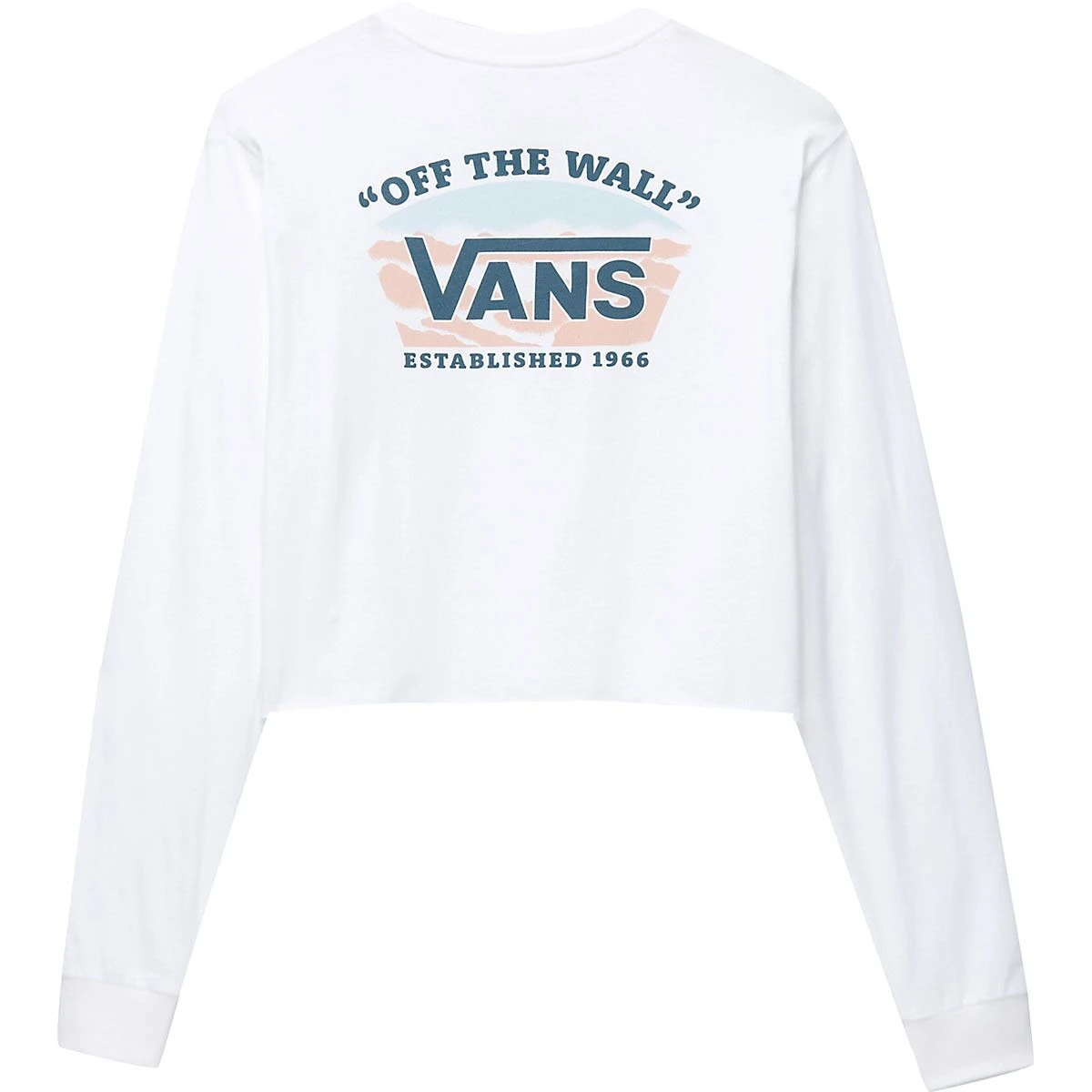 The Mountain Sky Long Sleeve BFF Crop T-Shirt is a cotton jersey tee with a cropped BFF fit an outdoor mountain-inspired logo graphics on the chest and back.